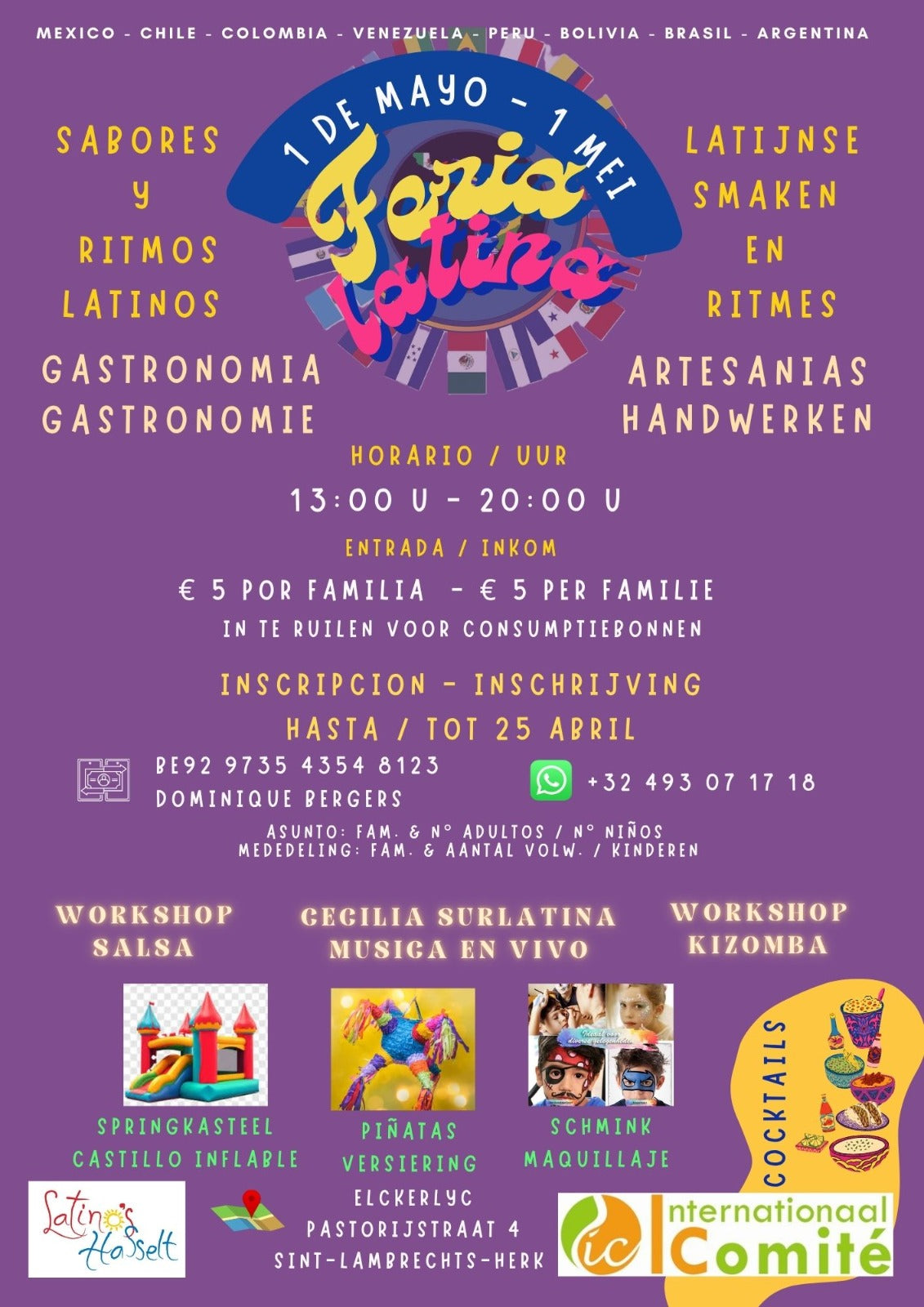 Registration: Latino's Hasselt €5 per family (redeemable for food and drinks). Registration required before 25 April